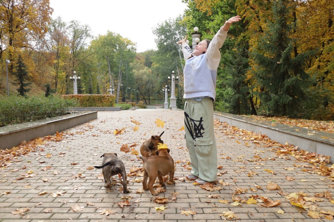 С 21 дня гуляют на улице, играя с другими собаками разных размеров.Благодаря этому у них никогда не будет аллергии, они прекрасно будут общаться в будущем с собаками любых размеров ,а вы будите встречать взгляды восхищения прохожих.