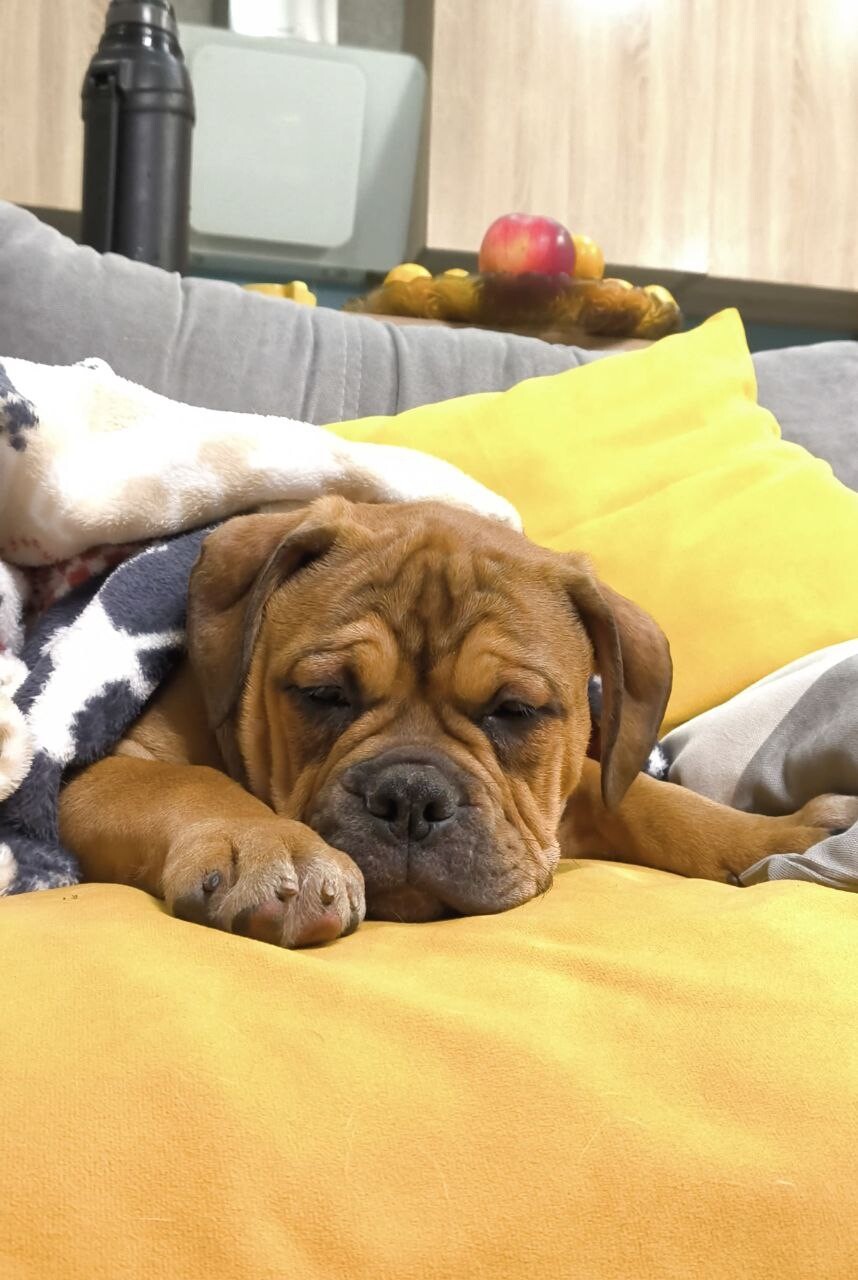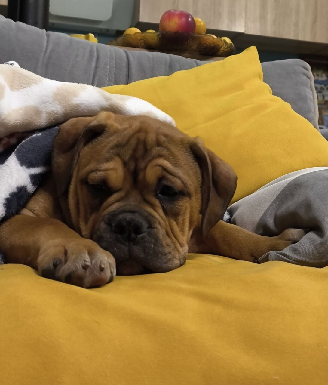 Стофн -самый ласковый кобель,обожает лежать на диване и сопеть. Ласковый и позитивный. Очень любит играть с детьми и игрушками. Так же обожает лежать на диване под бочком.