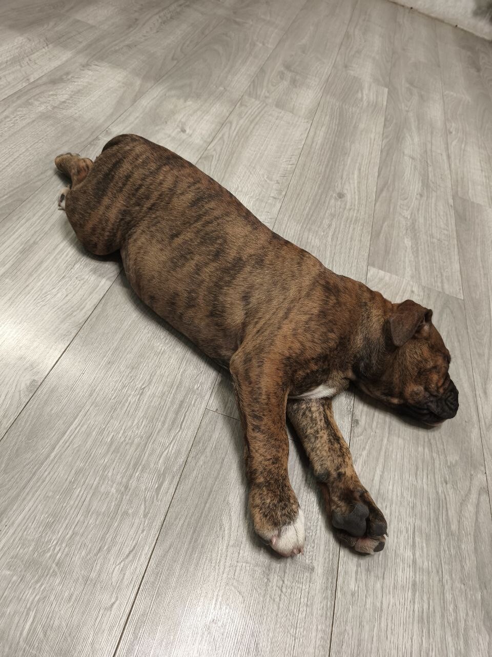 Серен -мощный щенок с очень красивой головой и корпусом.Для истинных ценителей яркого тигрового окраса. Спокойный и уверенный в себе .Очень любит бегать и играть с удочкой и мячиками.