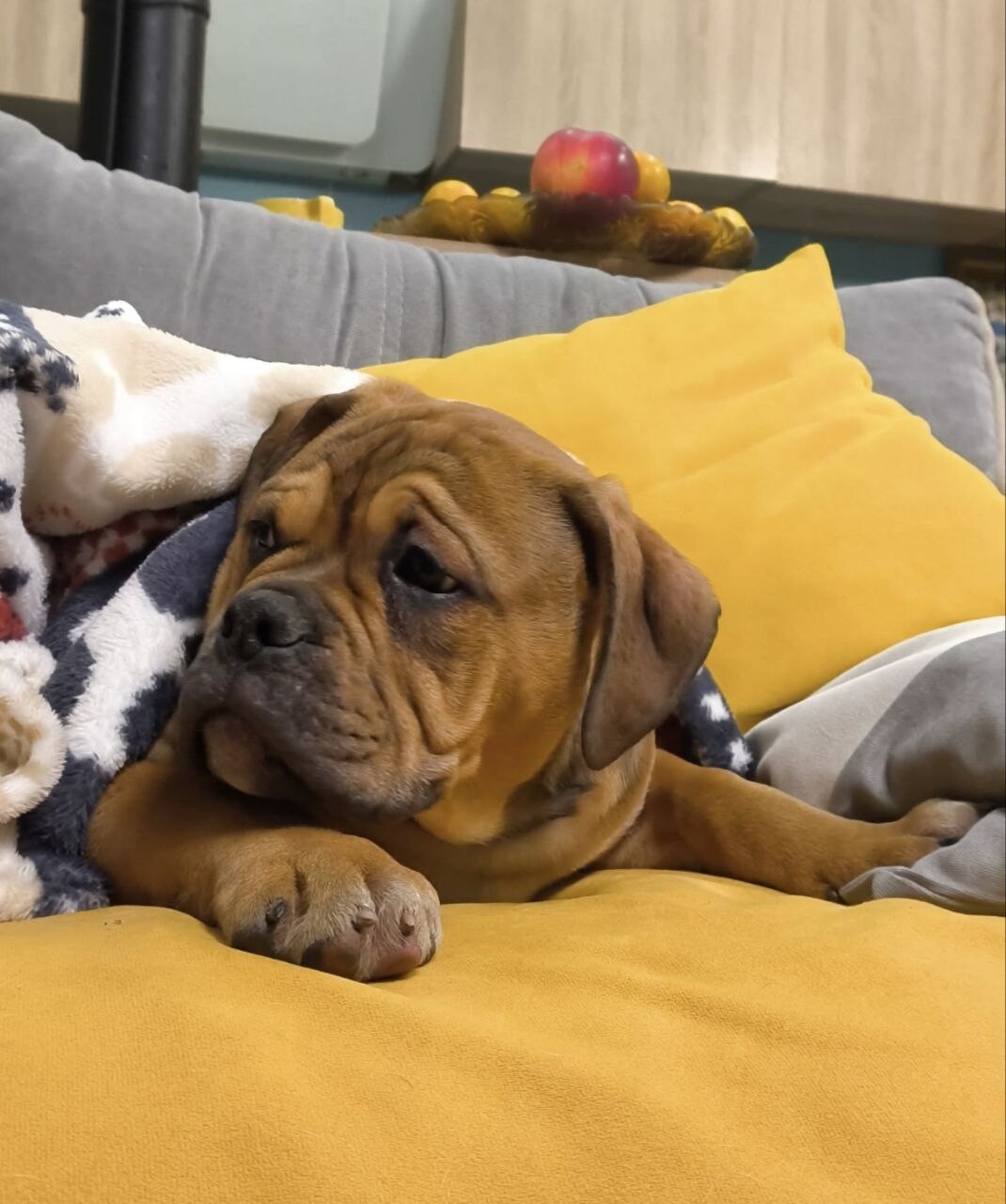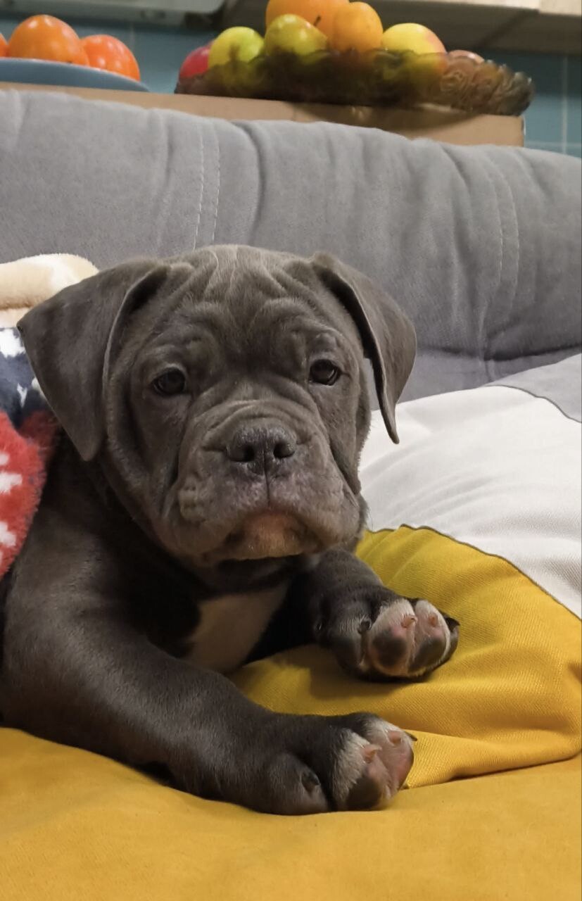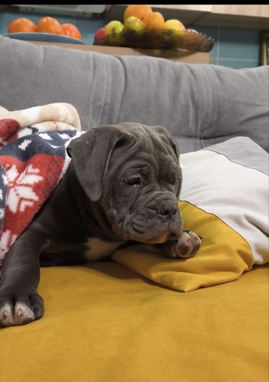 Сивер -в меру ленивый бульдог, обожает лежать рядышком на диванчике, обожает ласкаться с детьми и людьми. Очень быстрый и игривый. Мячики ,канатики, пуллеры, баклажки всё это он обожает.